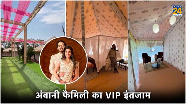 अंबानी फैमिली ने अपने गेस्ट के लिए टेंट हाउस का पार्टीशन कर दो कमरे बनवाए हैं। बाहर की ओर बैठक बनाई गई है, जिसमें सोफा और कंर्फटेबल कुर्सी रखी गई हैं। वहीं अंदर रूम है, जिसमें मेहमानों के लिए किंग साइज बेड, लैम्प, स्टडी टेबल, फोन, टीवी और म्यूजिक सिस्टम जैसी सारी सुविधाएं दी गई हैं। इतना ही नहीं रूम का एक और पार्टीशन कर ड्रेसिंग रूम तैयार किया गया है।