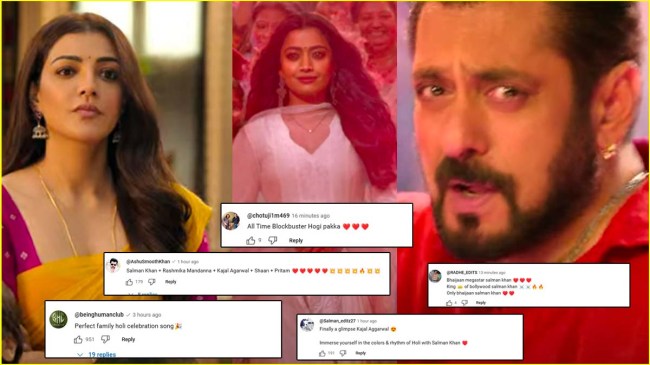 वहीं, अगर इस गाने पर लोगों के रिएक्शन की बात करें तो इंटरनेट पर इस गाने को लोगों ने खूब प्यार दिया है। एक यूजर ने इस गाने पर कमेंट करते हुए लिखा कि ऑल टाइम ब्लॉकबस्टर होगी पक्का। दूसरे यूजर ने लिखा कि फाइनली काजल अग्रवाल की झलक दिखी। तीसरे यूजर ने लिखा कि सलमान खान मेगास्टार, बॉलीवुड के भाईजान। एक और यूजर ने लिखा कि परफेक्ट फैमिली होली सेलिब्रेशन गाना। एक अन्य ने लिखा कि मजा ही आ गया। इस तरह के कमेंट्स लोगों ने इस गाने के वीडियो को देखने के बाद किए हैं।