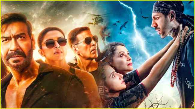 भूल भुलैया 3' (Bhool Bhulaiyaa 3) और एक्शन फिल्म 'सिंघम अगेन' (Singham Again) दोनों ही फैंस को बेहद पसंद आईं। बॉक्स ऑफिस पर कार्तिक आर्यन (Kartik Aaryan) और अजय देवगन (Ajay Devgn) की फिल्मों ने कमाई के सारे रिकॉर्ड तोड़ दिए हैं। 'भूल भुलैया 3' और 'सिंघम अगेन' ताबतोड़ कमाई कर रही हैं।