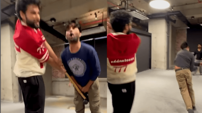 वीडियो में देखा जा सकता है कि सिद्धांत चतुर्वेदी अपनी आने वाली फिल्म ‘युध्रा’ को प्रमोट कर रहे हैं। इस फिल्म में एक्शन सीन्स भर-भर के दिखाए गए हैं, ऐसे में एक्टर भी अपने हाथ में एक हथौड़ा पकड़ते हैं और एक-एक कर फिल्म के एक्शन सीन की ही तरह अपने सामने आने वाले लोगों को जबरदस्त तरीके से मार देते हैं। इसी बीच एक शख्स के प्राइवेट पार्ट पर भी सिद्धांत हथौड़े से वार कर देते हैं, हालांकि अभिनेका के हाथ में जो हथौड़ा है वो नकली है और उससे किसी को भी कोई चोट नहीं लगती है। ट्विस्ट की बात ये है कि इस पूरे वीडियो में सभी एक्टिंग करते हुए नजर आते हैं और ये सिर्फ फिल्म को प्रमोट करने के लिए बनाया जाता है।