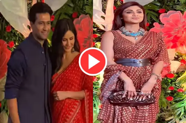 बॉलीवुड अभिनेता विक्की कौशल अपनी पत्नी कैटरीना कैफ के साथ पार्टी में पहुंचे। इस अवसर के लिए, कैटरीना ने एक सुंदर लाल साड़ी का विकल्प चुना, इस बीच, विक्की ने एक सफेद पायजामा के साथ एक गहरे नीले रंग का कुर्ता पहना।