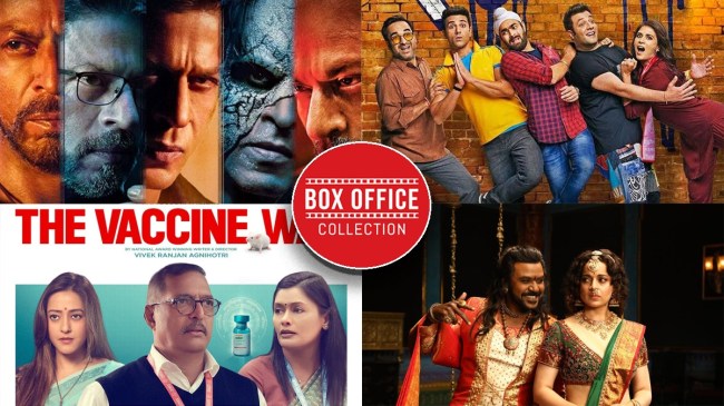 Box Office Report: बॉक्स ऑफिस पर इन दिनों चार बड़ी फिल्मों के बीच जबरदस्त टक्कर देखने को मिल रही है, जिनमें 24 दिन पहले रिलीज हुई शाहरुख खान (Shah Rukh Khan) की ‘जवान’ (Jawan), पुलकित सम्राट और वरुण शर्मा की की ‘फुकरे 3’ (Fukrey 3), नाना पाटेकर (Nana Patekar) की ‘द वैक्सीन वॉर’ (The Vaccine War) और कंगना रनौत (Kangana Ranaut) की ‘चंद्रमुखी 2’ (Chandramukhi 2) हैं। हालांकि, कमाई की मामले में बॉक्स ऑफिस पर तीन फिल्मों के बीच बराबर की टकर है, जिनमें तीन ‘फुकरे 3’, ‘चंद्रमुखी 2’ और ‘द वैक्सीन वॉर’, क्योंकि SRK की ‘जवान’ को रिलीज हुए 24 दिन हो चुके हैं और फिल्म ने अब तक 596.20 करोड़ का जबरदस्त आकंड़ा पार कर लिया है।
