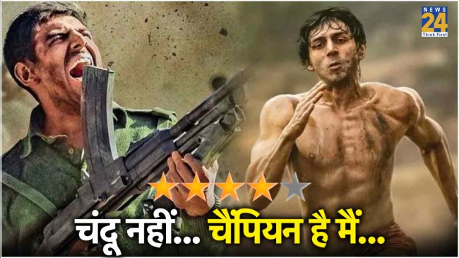 Chandu Champion Movie Review: (Navin Singh Bhardwaj) फिल्म इंडस्ट्री में खेल जगत से रिलेटेड फिल्में पहले भी कई बार बन चुकी हैं। चाहें ‘गोल्ड’ हो या ‘मैदान’ या फिर ‘एम एस धोनी: द अनटोल्ड स्टोरी’ ये सभी फिल्में बायोपिक हैं। इंडिया के रियल स्टार्स की जिंदगी से इंस्पायर्ड ये फिल्में हमेशा से दर्शकों का दिल जीतती आई हैं। यही वजह है कि ‘खेल और बॉलीवुड’ हमेशा से एक साथ चलता आया है। अब इस लिस्ट में फिल्म ‘चंदू चैंपियन’ का नाम भी जुड़ गया है। एक खिलाड़ी जिसके बारे में कम ही लोगों को पता है, जिनका नाम मुरलीकांत पेटकर है, पैरालंपिक गोल्ड मेडलिस्ट इस खिलाड़ी की जिंदगी को पर्दे पर लाने का काम किया है डायरेक्टर कबीर खान ने। बॉलीवुड एक्टर कार्तिक आर्यन की फिल्म ‘चंदू चैंपियन’ को साजिद नाडियाडवाला ने प्रोड्यूस किया है। ये फिल्म आज 14 जून को सिनेमाघरों में रिलीज हो चुकी है। फिल्म देखने से पहले एक बार जरूर पढ़ें फिल्म का रिव्यू।