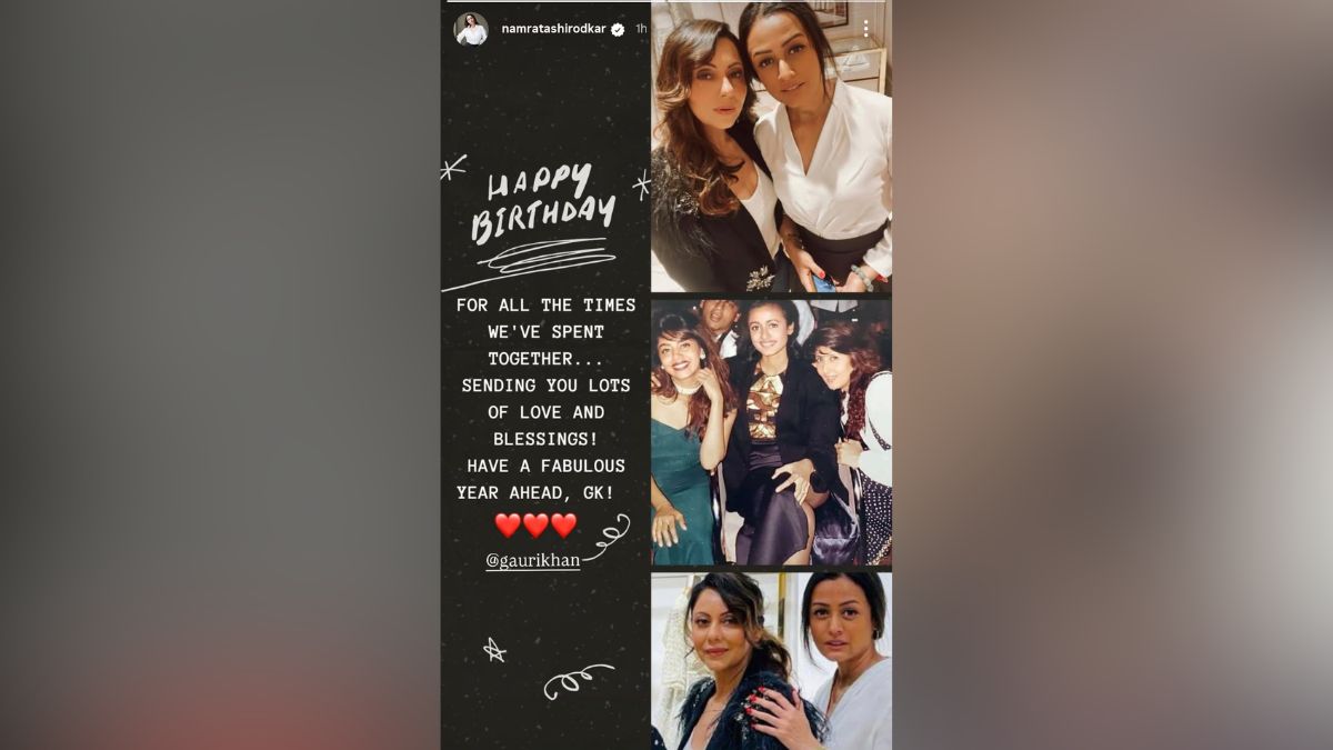 गौरी खान आज अपना जन्मदिन मना रही हैं. इस खास मौके पर सेलेब्स उन्हें ढेरों बर्थडे विशेज भेज रहे हैं. इल लिस्ट में एक नाम नम्रता शिरोडकर का भी शामिल है. उन्होंने उनके साथ पुरानी यादों की तस्वीरों को शेयर किया और लिखा, 'हमने साथ में जो वक्त बिताए, वो प्यार भेज रही हूं. आने वाला साल आपके लिए और शानदार हो.'