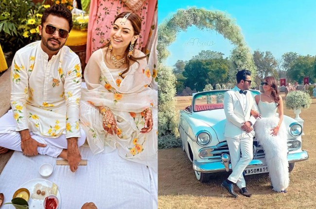 मेहंदी और संगीत सेरेमनी के बाद कपल के हल्दी फंक्शन की तस्वीरें सोशल मीडिया पर सामने आई हैं। इन तस्वीरों में हंसिका ने येलो और व्हाइट कलर की ड्रेस पहन रखी है,जिसमें वह बला की खूबसूरत लग रही हैं। सोहेल ने मैचिंग कलर कॉम्बिनेशन में फ्लोरल कुर्ता पयजामा पहना है। साथ ही बैकग्राउंड में बड़े-बड़े सूरजमुखी के फूलों का सेट बना हुआ दिख रहा है।