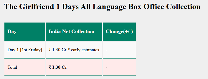 ‘द गर्लफ्रेंड’ का कलेक्शन