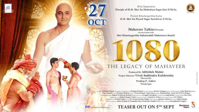 फिल्म ‘1080-द लीगेसी ऑफ महावीर’ का टीजर शिक्षक दिवस के दिन 5 सितंबर को रिलीज हुआ है। इस मूवी में जैन धर्म के इतिहास, संस्कृति और मूल्यों को दिखाया गया है। 27 अक्टूबर को मूवी देशभर के सिनमोघरों में पर्दे पर उतरेगी। आध्यात्म से भरे टीजर को लोग पसंद कर रहे हैं।