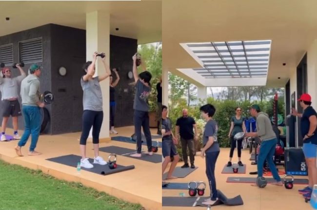 साथ ही वीडियो में ऋतिक का छोटा बेटा ऋधान वेट एक्सरसाइज करता नजर आ रहा है। वहीं ऋहान अपने पिता के साथ खेलता दिख रहा है। इसके साथ ही सुजैन और पश्मीना रोशन भी वेट का इस्तेमाल करते हुए दिख रही हैं, जबकि अर्सलान लंजेज कर रहे हैं। इतना ही नहीं बल्कि वीडियो में ऋतिक के ट्रेनर भी सभी को ठीक से वर्कआउट करने के लिए गाइड करते नजर आ रहे हैं।