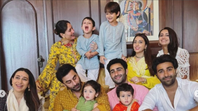 करिश्मा कपूर ने तस्वीरों के जरिए गणेश चतुर्थी के जश्न की कुछ तस्वीरें शेयर कीं, जिनमें रणबीर कपूर, करीना कपूर, तैमूर अली खान, जेह अली खान, रणधीर कपूर, बबिता कपूर, कुणाल कपूर, रीमा जैन, अरमान जैन अपनी पत्नी अनिसा मल्होत्रा और उनके बेटे आदर जैन के साथ नजर आ रहे हैं। हर तस्वीर में कपूर परिवार की खुशी और एकता साफ-साफ नजर आ रही है। इसके अलावा करीना कपूर के लाडले जेह और रणबीर कपूर की परी राहा कपूर भी बेहद क्यूट अंदाज में पोज देते हुए नजर आए।