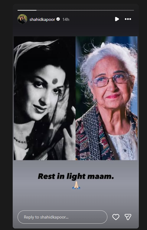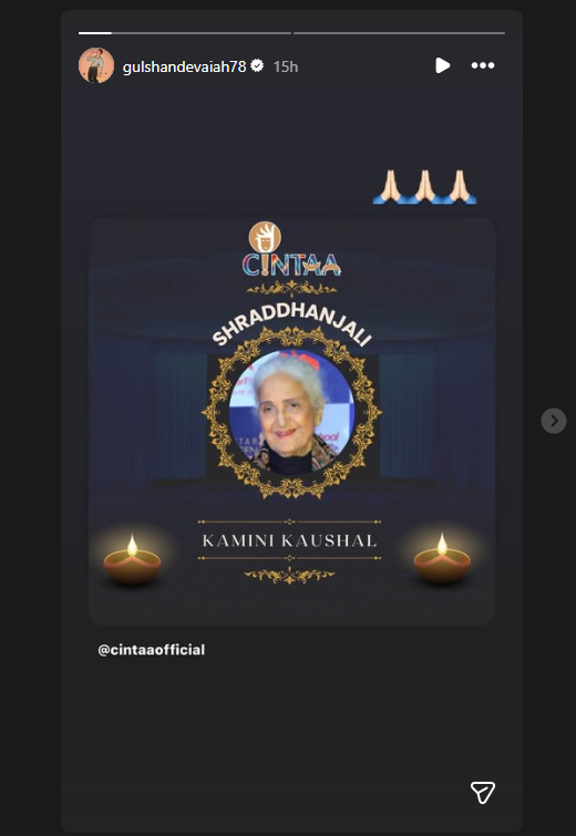 करीना कपूर और शाहिद कपूर के साथ-साथ कियारा आडवाणी ने भी कामिनी कौशल को श्रद्धांजलि दी. कियारा ने भी कामिनी कौशल की यंग फोटो शेयर की. फोटो शेयर करते हुए कियारा आडवाणी ने कैप्शन में लिखा, ‘आपके साथ काम करना मेरे लिए सम्मान की बात थी. आपकी शालीनता, विनम्रता और प्रतिभा ने पीढ़ियों को प्रेरित किया और भारतीय सिनेमा पर एक गहरी छाप छोड़ी है. भगवान आपकी आत्मा को शांति दे, कामिनी कौशल जी.’ वहीं दूसरी ओर ‘कांतारा चैप्टर 1’ फेम एक्टर गुलशन देवैया ने भी कामिनी कौशल की फोटो शेयर करते हुए उन्हें श्रद्धांजलि दी.