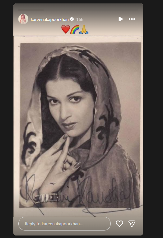 करीना कपूर ने कामिनी कौशल की एक यंग तस्वीर शेयर की है. इस फोटो में कामिनी बला की खूबसूरत दिखाई दे रही हैं. करीना कपूर ने इस फोटो को शेयर करते हुए इस पर हार्ट, इंद्रधनुष और हाथ जोड़ने का इमोजी भी लगाया. करीना की ये पोस्ट सोशल मीडिया पर काफी वायरल हो रही है. वहीं शाहिद कपूर ने भी कामिनी कौशल को श्रद्धांजलि देते हुए उनकी यंग और लेटेस्ट फोटो शेयर कीं. शाहिद ने इन फोटोज को शेयर करते हुए कैप्शन लिखा, ‘रेस्ट इन लाइट, मैम.’