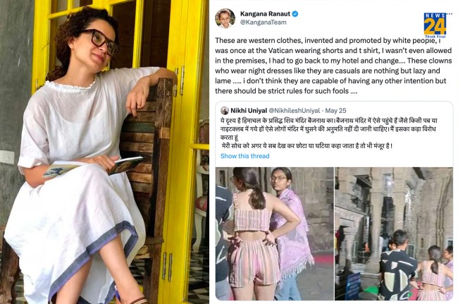 बस फिर क्या था एक्ट्रेस कंगना रनौत भी यूजर के सपोर्ट में उतर आईं और री-ट्वीट करते हुए लिखा कि- ये वेस्टर्न कपड़े हैं, जिन्हें अंग्रेजों ने बनाया और प्रमोट किया। एक बार मैं वैटिकन में थी और मैंने शॉर्ट्स, टी-शर्ट पहने हुए थे। मुझे परिसर में घुसने तक की अनुमति नहीं थी। मुझे होटल जाकर चेंज करना पड़ा था। नाइट ड्रेस पहनने वाली ये कैजुअल कपड़ों में आलसी और बेवकूफ हैं। मुझे नहीं लगता इनकी कुछ और मंशा होगी लेकिन इस तरह के मूर्खों के लिए सख्त नियम होने चाहिए।