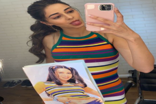 तस्वीर में, 23 वर्षीय अनन्या को करिश्मा कपूर के 90s के दशक की एक फिल्म के लुक के ट्विनिंग करते हुए देखा जा सकता है। दोनों ही एक्ट्रेस ने कलरफुल स्ट्रिप्ड वाली ड्रेस को कैरी किया है।