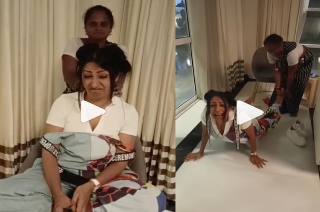 ऐसा ही एक वीडियो मशहूर एक्ट्रेस और मॉडल कश्मीरा शाह का भी सामने आया है, जो खूब वायरल हो रहा है। इस वीडियो में कश्मीरा शाह चीखती-चिल्लाती नजर आ रही हैं। क्लिप में कश्मीरा के तमाम मिन्नतों और चीखने चिल्लाने के बावजूद उनकी काम वाली उनपर रहम करती नजर नहीं आती। वीडियो में देखा जा सकता है कि कश्मीरा की मेड उनके पैर पकड़कर खींचती रही और नो मसाज करवाने से मना करती रहीं।