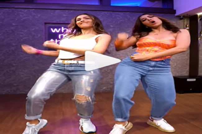 वीडियो में मलाइका सफेद क्रॉप टॉप और ब्लू डेनिम में नजर आ रही हैं। वहीं सोफी ऑरेंज कलर का ऑफ शोल्डर क्रॉप टॉप पहन रखा है, जिसमें वो काफी हॉट दिख रही हैं। दोनों एक्ट्रेसेज ने अपने हाथों में चूड़ियां भी सजाई हुई है। वीडिओ सोशल मीडिया पर काफी वायरल हो रहा है, जिससे फैंस की भी नज़र नहीं हट रही।