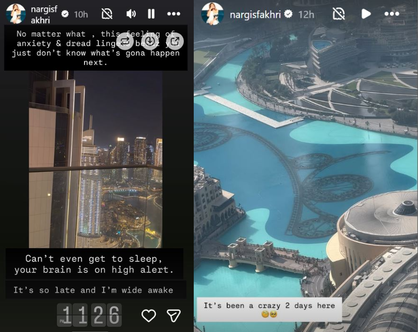 दुबई में बढ़ते तनाव के बीच उनकी रातों की नींद उड़ गई है. दरअसल, नरगिस ने सोशल मीडिया पर पोस्ट शेयर किया जिसमें उन्होंने अपने दर्द को साझा किया है. एक्ट्रेस नरगिस फाखरी ने पोस्ट कर लिखा ‘पिछले दो दिनों से बहुत उथल-पुथल मचा हुआ है. चाहे कुछ भी हो यहां चिंता और डर बना रहता है. क्योंकि हमें कुछ पता नहीं कि आगे क्या होने वाला है, मैं सो भी नहीं पा रही हूं., आपका दिमाग हाई अलर्ट पर रहता है. इतना ही नहीं हाल ही में सोनल चौहान ने भी अपने इंस्टाग्राम हैंडल पर एक पोस्ट शेयर की थी, जिसमें उन्होंने भारत के प्रधानमंत्री नरेंद्र मोदी से मदद की गुहार लगाई थी. उन्होंने कहा था की फ्लाइट कैंसिल होने के बाद भारत लौटने का उनके पास कोई रास्ता समझ नहीं आ रहा है.