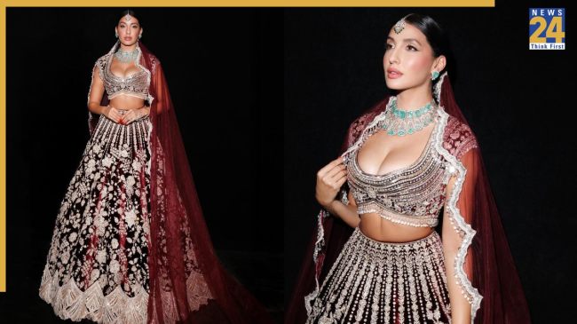 हालांकि, कहानी में एक ट्विस्ट है. नोरा भले ही शादी एक कपड़ों में नजर आ रही हैं, लेकिन इसका ये मतलब नहीं है कि उन्होंने शादी कर ली है. आपको बता दें, नोरा फतेही अब मशहूर फैशन डिजाइनर मनीष मल्होत्रा की शो स्टॉपर बनी हैं. उन्होंने उनके शो के लिए ये ब्राइडल लुक लिया है और रियल लाइफ में कोई शादी नहीं की. उनके लुक की बात करें तो नोरा ने मैरून और सिल्वर कलर का खूबसूरत लहंगा पहना है. इस लहंगे पर हैवी एम्ब्रॉयडरी हो रखी है. साथ ही इस लहंगे का ब्लाउज भी नोरा फतेही के बाकी आउटफिट की तरह ही बेहद बोल्ड लग रहा है.