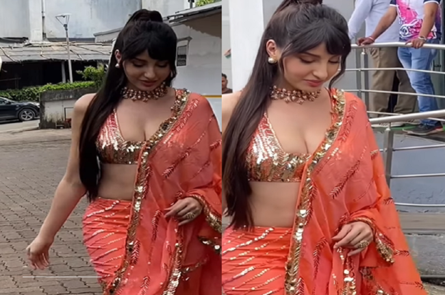 рджреВрд╕рд░реА рдУрд░ рдиреЛрд░рд╛ рдлрддреЗрд╣реА рдиреЗ рдкреАрдЪ рдХрд▓рд░ рдХреА рд╕рд╛рдбрд╝реА рдФрд░ рдбреАрдк рдиреЗрдХ рдмреНрд▓рд╛рдЙрдЬ рдХреЗ рд╕рд╛рде рдХрд╣рд░ рдврд╛рдпрд╛ред рд▓рд╛рдЗрдЯ рд╡реЗрдЯ рд╕рд╛рдбрд╝реА рдХрд╛ рдЖрдХрд░реНрд╖рдг рд░рд╣рд╛ рдиреЛрд░рд╛ рдХрд╛ рд╣реЗрд╡реА рдмреНрд▓рд╛рдЙрдЬрд╝, рдЬрд┐рд╕рдХреА рдкреНрд▓рдВрдЬрд┐рдВрдЧ рдиреЗрдХрд▓рд╛рдЗрди рдиреЗ рд╕рд┐рдВрдкрд▓ рд╕рд╛рдбрд╝реА рдореЗрдВ рдЧреНрд▓реИрдорд░ рдХрд╛ рддрдбрд╝рдХрд╛ рд▓рдЧрд╛рдпрд╛ред рдиреЛрд░рд╛ рдиреЗ рд╣рд╛рдИ рдкреЛрдиреА рдЯреЗрд▓ рдХреЗ рд╕рд╛рде рдЕрдкрдирд╛ рд░реЗрдЯреНрд░реЛ рд▓реБрдХ рдкреВрд░рд╛ рдХрд┐рдпрд╛ред
