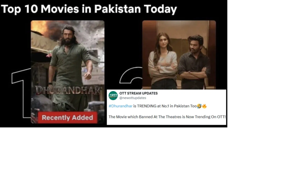 फिल्म ‘धुरंधर’ को हाल ही में ओटीटी प्लेटफॉर्म नेटफ्लिक्स पर रिलीज किया गया. जैसे ही फिल्म ओटीटी पर आई, तो इसे लोगों ने इतना प्यार दिया कि ये पहले नंबर पर ट्रेंड करने लगी. ना सिर्फ भारत बल्कि इस फिल्म को पड़ोसी देश पाकिस्तान में भी खूब देखा रहा है. जैसे ही फिल्म ‘धुरंधर’ नेटफ्लिक्स पर रिलीज हुई, तो पाकिस्तान में नंबर 1 ट्रेंड पर पहुंच गई.