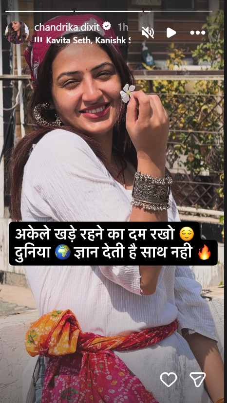 рдЗрд╕ рдкреЛрд╕реНрдЯ рдХреЛ рд╢реЗрдпрд░ рдХрд░рддреЗ рд╣реБрдП рд╡рдбрд╝рд╛ рдкрд╛рд╡ рдЧрд░реНрд▓ рдиреЗ рдЗрд╕рдХреЗ рдХреИрдкреНрд╢рди рдореЗрдВ рд▓рд┐рдЦрд╛ рдерд╛ рдХрд┐ рд╣реИ рдЧреБрдЬрд╛рд░рд┐рд╢ рдФрд░ рджрд┐рд▓ рдХреА рдЗрдореЛрдЬреА. рдЗрд╕реА рдХреЗ рд╕рд╛рде рдЪрдВрджреНрд░рд┐рдХрд╛ рдиреЗ рдЕрдкрдиреЗ рдЗрдВрд╕реНрдЯрд╛рдЧреНрд░рд╛рдо рд╕реНрдЯреЛрд░реА рдкрд░ рднреА рдПрдХ рдкреЛрд╕реНрдЯ рд╢реЗрдпрд░ рдХрд┐рдпрд╛ рд╣реИ, рдЬрд┐рд╕рдореЗрдВ рдЙрдиреНрд╣реЛрдВрдиреЗ рд▓рд┐рдЦрд╛ рд╣реИ рдХрд┐ рдЕрдХреЗрд▓реЗ рдЦрдбрд╝реЗ рд░рд╣рдиреЗ рдХрд╛ рджрдо рд░рдЦреЛ, рджреБрдирд┐рдпрд╛ рдЬреНрдЮрд╛рди рджреЗрддреА рд╣реИ, рд╕рд╛рде рдирд╣реАрдВ.