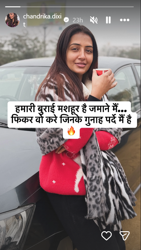 दरअसल, चंद्रिका दीक्षित ने अपने इंस्टाग्राम पर एक स्टोरी पोस्ट की है. इस पोस्ट में उन्होंने लिखा है कि हमारी बुराई मशहूर है जमाने में, फिक्र वो करें जिनके गुनाह पर्दे में हैं. इस पोस्ट में वड़ा पाव गर्ल ने एक बार फिर से तंज कसा है. इसके अलावा उन्होंने अपने इंस्टाग्राम पर हालिया वीडियो भी शेयर किया है.