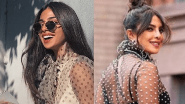 рджрд░рдЕрд╕рд▓ рдкрд╛рдХрд┐рд╕реНрддрд╛рдиреА рдПрдХреНрдЯреНрд░реЗрд╕ рд╕реЛрдиреНрдпрд╛ рд╣реБрд╕реИрди рдиреЗ рдХреБрдЫ рддрд╕реНрд╡реАрд░реЗрдВ рдЕрдкрдиреЗ рд╕реЛрд╢рд▓ рдореАрдбрд┐рдпрд╛ рдкрд░ рд╢реЗрдпрд░ рдХреА рдереАрдВред рдЗрди рддрд╕реНрд╡реАрд░реЛрдВ рдореЗрдВ рд╕реЛрдиреНрдпрд╛ рдиреЗ рдмреНрд▓реИрдХ рдФрд░ рд╡реНрд╣рд╛рдЗрдЯ рдХрд▓рд░ рдХрд╛ рдкреЛрд▓реНрдХрд╛ рдкреНрд░рд┐рдВрдЯ рдбреЙрдЯ рд╡рд╛рд▓рд╛ рдЯреЙрдк рдкрд╣рдирд╛ рдерд╛ред рдЗрд╕рдХреЗ рдЕрд▓рд╛рд╡рд╛ рдПрдХреНрдЯреНрд░реЗрд╕ рдХреЗ рд╕рдирдЧреНрд▓рд╛рд╕реЗрд╕ рдиреЗ рднреА рд╕рднреА рдХрд╛ рдзреНрдпрд╛рди рдЕрдкрдиреА рдУрд░ рдЦреАрдВрдЪрд╛ред рдЗрди рдлреЛрдЯреЛрдЬ рдХреЛ рдкрд╣рд▓реА рдирдЬрд░ рдореЗрдВ рджреЗрдЦ рдЖрдк рднреА рдзреЛрдЦрд╛ рдЦрд╛ рдЬрд╛рдПрдВрдЧреЗ, рдЖрдкрдХреЛ рд▓рдЧреЗрдЧрд╛ рдХрд┐ рдпреЗ рддреЛ рдкреНрд░рд┐рдпрдВрдХрд╛ рдЪреЛрдкрдбрд╝рд╛ рд╣реА рд╣реИрдВред рдЧреМрд░ рд╕реЗ рджреЗрдЦрдиреЗ рдкрд░ рдкрддрд╛ рдЪрд▓реЗрдЧрд╛ рдХрд┐ рдпреЗ рд╕реЛрдиреНрдпрд╛ рд╣реИрдВред рд╕реЛрдиреНрдпрд╛ рдХреА рдЗрди рддрд╕реНрд╡реАрд░реЛрдВ рдХреЛ рд▓реЗрдХрд░ рднреА рдЗрдВрдбрд╕реНрдЯреНрд░реА рдХреЗ рдЙрдирдХреЗ рджреЛрд╕реНрддреЛрдВ рдиреЗ рднреА рдЦреВрдм рдкреНрдпрд╛рд░ рд▓реБрдЯрд╛рдпрд╛ рд╣реИред