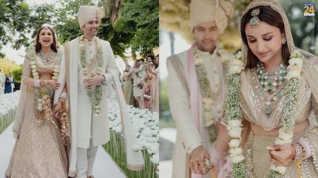 Parineeti Chopra Raghav Chadha Traditional Look: परिणीति चोपड़ा (Parineeti Chopra) और राघव चड्ढा (Raghav Chadha) पर मीडिया पल-पल नज़रे बनाए हुए है। इस कपल को शादी के बाद से लगातार कैप्चर किया जा रहा है। आज-आज में परिणीति और राघव के कई नए वीडियो और फोटोज सामने आ चुके हैं। किसी लुक को फैंस ने खूब पसंद किया तो किसी ड्रेस में एक्ट्रेस ट्रोलिंग का शिकार हो गईं। वहीं, अब परिणीति चोपड़ा और राघव चड्ढा का नया वीडियो सोशल मीडिया पर सामने आ गया है।