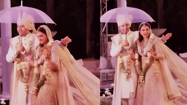 Parineeti-Raghav Wedding Video: बॉलीवुड एक्ट्रेस परिणीति चोपड़ा (Parineeti Chopra) और आम आदमी पार्टी सांसद राघव चड्ढा (Raghav Chadha) शादी के बंधन में बंध चुके हैं। दोनों की काफी सारी फोटो-वीडियो सोशल मीडिया पर वायरल हो रही है, जिनको काफी पसंद किया जा रहा है। इसी बीच दोनों की एक और वीडियो तेजी से वायरल हो रही है, जिसमें दोनों झूमते और नाचते नजर आ रहे हैं। वीडियो को काफी पंसद किया जा रहा है। वीडियो में परी और राघव शादी के जोड़े में नजर आ रहे हैं। साथ ही राघव ने छाता पकड़ा हुआ और परी के साथ डांस करते नजर आ रहे हैं।
