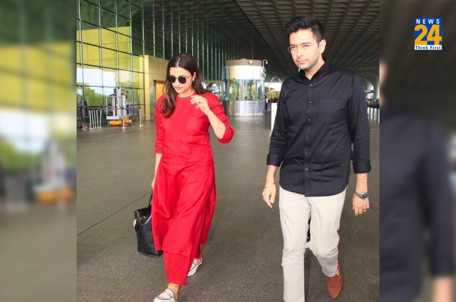 अब इस बीच कपल को पहले मुंबई और अब दिल्ली एयरपोर्ट पर स्पॉट किया गया है। दोनों एक ही गाड़ी से मुंबई एयरपोर्ट पहुंचे थे। इस दौरान एक्ट्रेस ने रेड कलर का सिंपल सा सूट पहना हुआ था। वहीं राघव ने ब्लैक शर्ट के साथ क्रीम पैंच मैचिंग की थी। दोनों ने एक साथ ही एयरपोर्ट में एंट्री की थी और अब दोनों को दिल्ली एयरपोर्ट पर पैपराजी ने कैप्चर किया। इस दौरान पैपराजी ने परिणीति से उनकी शादी को लेकर सवाल किया जिस पर एक्ट्रेस शरमा कर ब्लश करने लगीं और बिना जवाब दिए कार में बैठ गईं।