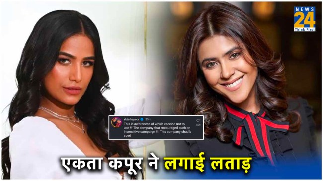 पूनम पांडे की इस पोस्ट पर एकता कपूर ने उनकी लताड़ लगाई है। एकता ने पूनम की पोस्ट पर कमेंट करते हुए लिखा, यह जागरूकता है कि कौन सी वैक्सीन का उपयोग नहीं करना है!!! वह कंपनी जिसने ऐसे असंवेदनशील अभियान को प्रोत्साहित किया !!!! इस कंपनी पर मुकदमा दायर करना चाहिए।