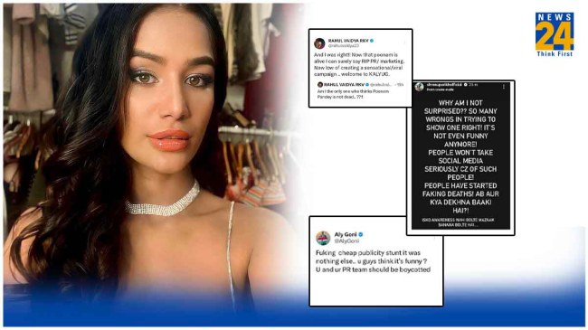 Poonam Pandey Fake Death Stunt: मॉडल पूनम पांडे (Poonam Pandey) के कथित मौत की खबरों ने हर किसी को शॉक्ड कर दिया था लेकिन ठीक दूसरे दिन एक्ट्रेस जिंदा और साक्षात रूप में लोगों के सामने आ चुकी हैं। उन्होंने शनिवार सुबह अपने आधिकारिक इंस्टाग्राम अकाउंट पर एक वीडियो शेयर की और बताया कि वह जिंदा हैं। उन्हें सवाईकल कैंसर नहीं हुआ है। पूनम ने जैसे ही वीडियो शेयर की तो लोगों का गुस्सा सातवें आसमान पर चढ़ गया है। राहुल वैद्य से लेकर अली गोनी तक ने पूनम पांडे पर अपना गुस्सा जाहिर किया है।