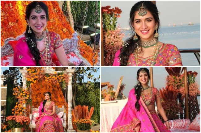 рдЕрдВрдмрд╛рдиреА рдкрд░рд┐рд╡рд╛рд░ рдХреА рд╣реЛрдиреЗ рд╡рд╛рд▓реА рдЫреЛрдЯреА рдмрд╣реВ рдиреЗ рдЕрдкрдиреЗ рдореЗрд╣рдВрджреА рдлрдВрдХреНрд╢рди рдХреЗ рд▓рд┐рдП рдлреНрдпреВрд╢рд┐рдпрд╛ рдкрд┐рдВрдХ рдХрд▓рд░ рдХрд╛ рдлреНрд▓реЛрд░рд▓ рд░реЗрд╢рдо рдХрд╛ рдПрдореНрдмреНрд░реЙрдПрдбрд░реНрдб рд▓рд╣рдВрдЧрд╛ рдХреИрд░реА рдХрд┐рдпрд╛ред рд╕рд╛рде рд╣реА рд░рд╛рдзрд┐рдХрд╛ рдиреЗ рдкреЛрд▓реНрдХреА рдЪреЛрдХрд░ рдиреЗрдХрд▓реЗрд╕, рдореИрдЪрд┐рдВрдЧ рдЗрдпрд░рд┐рдВрдЧреНрд╕, рдорд╛рдВрдЧ-рдЯреАрдХрд╛ рдФрд░ рдмрдбрд╝реЗ рд╕реЗ рдиреЗрдХрд▓реЗрд╕ рдХреЗ рд╕рд╛рде рдЕрдкрдиреЗ рдореЗрд╣рдВрджреА рд▓реБрдХ рдХреЛ рдкреВрд░рд╛ рдХрд┐рдпрд╛ред рдЗрд╕рдХреЗ рд╕рд╛рде рд╣реА рдЙрдиреНрд╣реЛрдВрдиреЗ рдЕрдкрдиреЗ рдмрд╛рд▓реЛрдВ рдХреЛ рдЖрд░реНрдЯрд┐рдлрд┐рд╢рд┐рдпрд▓ рдлреНрд▓рд╛рд╡рд░реНрд╕ рдХреЗ рд╕рд╛рде рдПрдХ рдлрд┐рд╢рдЯреЗрд▓ рдмреНрд░реЗрдб рдореЗрдВ рд╕реНрдЯрд╛рдЗрд▓ рдХрд┐рдпрд╛ рд╣реБрдЖ рдерд╛ред
