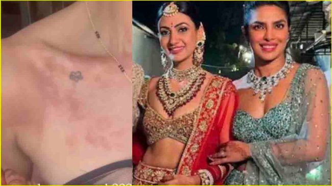 рдкреНрд░рд┐рдпрдВрдХрд╛ рдЪреЛрдкреЬрд╛ рдХреА рднрд╛рднреА рдиреЗ рджрд┐рдЦрд╛рдпрд╛ рд╣реИ рдХрд┐ рдХрд┐рд╕ рддрд░рд╣ рд╕реЗ рдЙрдиреНрд╣реЗрдВ рд░рд┐рдПрдХреНрд╢рди рд╣реБрдЖ рд╣реИ рдФрд░ рдЙрдиреНрд╣реЗрдВ рд░реИрд╢реЗрдЬ рд╣реЛ рдЧрдП рд╣реИрдВред рддрд╕реНрд╡реАрд░ рдореЗрдВ рдиреАрд▓рдо рдЙрдкрд╛рдзреНрдпрд╛рдп рдХреА рдмреЙрдбреА рдкрд░ рдХрд╛рдлреА рдЬреНрдпрд╛рджрд╛ рд░реИрд╢реЗрдЬ рджрд┐рдЦ рд░рд╣реЗ рд╣реИрдВред рдЗрд╕ рддрд╕реНрд╡реАрд░ рдХреЛ рд╢реЗрдпрд░ рдХрд░рддреЗ рд╣реБрдП рдЙрдиреНрд╣реЛрдВрдиреЗ рд▓рд┐рдЦрд╛, ‘рдореБрдЭреЗ рд▓рдЧрддрд╛ рд╣реИ рдХрд┐ рдпреЗ рд╣рд▓реНрджреА рдкреЗрд╕реНрдЯ рдХрд╛ рд╕рди рд╕реЗ рд╣реБрдЖ рд░рд┐рдПрдХреНрд╢рди рд╣реИред рд╣рд╛рд▓рд╛рдВрдХрд┐, рдореИрдВрдиреЗ рдлрдВрдХреНрд╢рди рд╕реЗ рдХреБрдЫ рджрд┐рди рдкрд╣рд▓реЗ рдкреИрдЪ рдЯреЗрд╕реНрдЯ рдХрд┐рдпрд╛ рдерд╛ рдФрд░ рд╕рдм рдХреБрдЫ рдареАрдХ рдерд╛ред рдХреЛрдИ рдЙрдкрд╛рдп?’ рдкреНрд░рд┐рдпрдВрдХрд╛ рдХреА рднрд╛рднреА рдиреЗ рд░рд┐рд╡реАрд▓ рдХрд┐рдпрд╛ рд╣реИ рдХрд┐ рд╢рд╛рджреА рдХреА рд╣рд▓реНрджреА рдХреА рд╡рдЬрд╣ рд╕реЗ рдЙрдиреНрд╣реЗрдВ рдпреЗ рд░рд┐рдПрдХреНрд╢рди рд╣реБрдЖ рд╣реИ рдФрд░ рдЕрдм рд╡реЛ рдлреИрдВрд╕ рд╕реЗ рдЗрд╕реЗ рдареАрдХ рдХрд░рдиреЗ рдХреЗ рдиреБрд╕реНрдЦреЗ рдкреВрдЫ рд░рд╣реА рд╣реИрдВред
