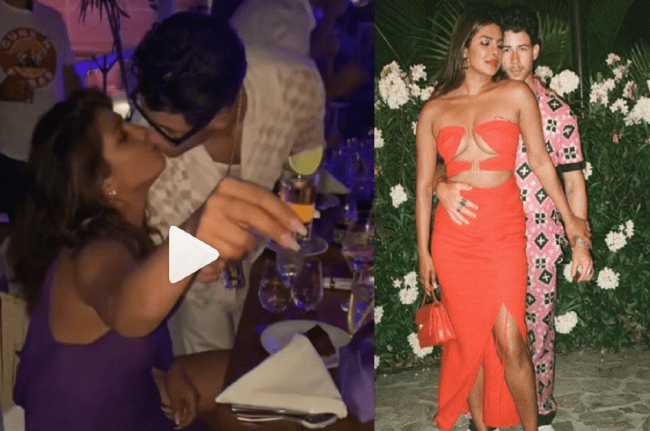प्रियंका चोपड़ा के जन्मदिन के कुछ दिनों बाद, सेलीब्रेशन का एक नया वीडियो छाया हुआ है, जिसमें एक्ट्रेस और उनके गायक-पति निक जोनस (Nick Jonas) को अपने खास लोगों के साथ क्वालिटी टाइम बिताते हुए देखा जा सकता है। अब फैन अकाउंट द्वारा एक अनसीन वीडियो साझा किया गया है, जिसमें पावर कपल को एक रेस्तरां में लिप लॉक करते हुए देखा जा सकता है। बाद के क्लिप में, देसी गर्ल को समुद्र के किनारे नंगे पांव थिरकते हुए भी देखा गया। निक जोनास वीडियो में अपनी सास मधु चोपड़ा के साथ भी थिरकते हुए नजर आए। उन्होंने प्रिंटेड नाइट सूट पहना था जबकि मधु ने ब्लैक लेगिंग्स के साथ लाल कुर्ती में अपने लुक को सिंपल रखा।
