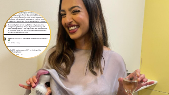 हालांकि इस तस्वीर ने कुछ नेटिजन्स को परेशान कर दिया। कई यूजर्स ने टिप्पणी की कि राधिका का ये मैसेज गलत हो सकता है, खासकर अगर वो शैंपेन के साथ दूध पंप कर रही हैं। एक यूजर ने लिखा कि ‘राधिका ये गलत संदेश दे रही हैं। अगर आप शराब पी रही हैं और दूध पंप कर रही हैं, तो ये बच्चों के लिए हानिकारक हो सकता है क्योंकि शराब दूध में मिल सकती है।’ दूसरे ने कहा, ‘आपको ब्रेस्टफीडिंग करते वक्त शराब नहीं पीनी चाहिए।’