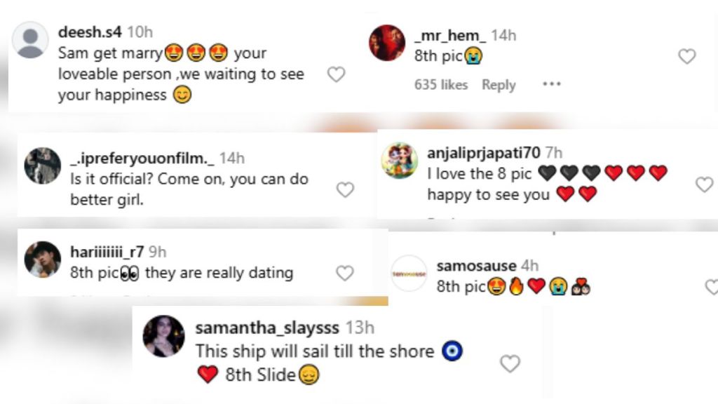 समांथा रुथ प्रभु की फोटोज और कैप्शन से ये तो साफ है कि राज निदिमोरु उनकी लाइफ का एक खास हिस्सा हैं. वहीं अब यूजर्स भी राज के साथ समांथा के रिलेशनशिप पर बात करते हुए इस रिश्ते को कंफर्म का टैग देते नजर आ रहे हैं. एक यूजर ने लिखा, ‘फोटोज की 8वीं स्लाइड में लग रहा है कि ये जहाज किनारे तक जाएगा.’ दूसरे यूजर ने लिखा, ‘8वीं फोटो राज के साथ बेहद पसंद आई. आपको देखकर खुशी हुई.’ एक अन्य यूजर ने लिखा, ‘ये लोग सच में डेट कर रहे हैं. आठवीं तस्वीर में साफ हो गया.’