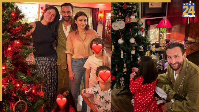 Saif Ali Khan-Kareena Kapoor Christmas Celebration: सैफ अली खान और करीना कपूर ने अपनी फैमिली के साथ पटौदी पैलेस में क्रिसमस सेलिब्रेशन किया. सोहा अली खान ने इस सेलिब्रेशन की फोटोज सोशल मीडिया पर शेयर की हैं. इनमें सैफ-करीना पजामा पहने क्रिसमस पार्टी करते दिखाई दे रहे हैं. वहीं फोटोज में जेह, तैमूर और इनाया क्रिसमस ट्री सजाते नजर आ रहे हैं. इन फोटोज में बच्चे शरारती मोड में देखने को मिल रहे हैं. पटौदी परिवार के इस क्रिसमस सेलिब्रेशन में सैफ अली खान, करीना कपूर, सोहा अली खान, जेह, तैमूर, इनाया और शर्मिला टैगोर भी नजर आ रही हैं.