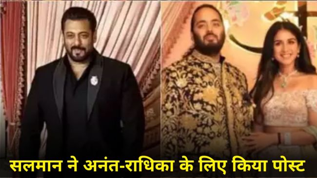 Salman Khan Shares Post for Anant & Radhika: अनंत अंबानी और राधिका मर्चेंट की शादी पिछले पूरे हफ्ते काफी ट्रेंड में रही। दोनों की 12 जुलाई को आखिरकार शादी हो गई। दोनों की शादी में पूरा बॉलीवुड एक जगह इकट्ठा हो गया। शाहरुख, सलमान से लेकर बिग बी, रजनीकांत तक हर किसी ने अनंत-राधिका की शादी में जमकर डांस किया। दोनों की शादी के बाद अब बॉलीवुड के दबंग खान यानी कि सलमान खान ने नए जोड़े के लिए एक बड़ा ही प्यारा पोस्ट शेयर किया है। आखिर क्या कहा है सलमान खान ने इस रिपोर्ट में जानिए।