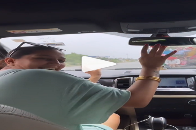 उन्होंने कुछ देर पहले एक वीडियो (Sapna Choudhary Video) साझा किया, जिसमें उन्हें अपनी कार में बैठे हुए देखा जा सकता है। ये वीडियो एक चलती हुई गाड़ी का है, जिसमें वो खुद बैठकर ‘लव यू गोरी रे’ गाने पर डांस कर रही हैं। लेकिन मजेदार ट्विस्ट ये है कि सपना अकेली नहीं है बल्कि उनकी कार के आगे चल रही एक ट्रक में बैठी कुछ महिलाएं भी उनका साथ दे रही हैं। इन सभी महिलाओं ने हरियाणवी परिधान पहना हुआ है और ट्रक पर बैठी सपना चौधरी के साथ उनके गाने पर झूमती हुई जा रही हैं।