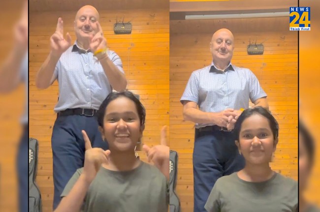 इस वीडियो में वंशिका बैठी हुई नजर आ रही है और गाने पर लिपसिंग कर रही हैं। इसके साथ ही उनके पीछे अनुपम खेर खड़े हुए हैं और वो वंशिका को कॉपी करते हुए दिख रहे हैं। इस वीडियो में दोनों खुश लग रहे हैं और बहुत क्यूट भी लग रहे हैं।