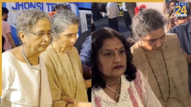 Satish Shah Prayer Meet: दिग्गज एक्टर सतीश शाह का 25 अक्टूबर को 74 साल की उम्र में निधन हो गया. एक्टर किडनी संबंधी समस्याओं से जूझ रहे थे. वहीं हाल ही में मुंबई में सतीश शाह की प्रेयर मीट रखी गई. उनकी प्रेयर मीट में टीवी सितारों के साथ-साथ बॉलीवुड के बड़े दिग्गज एक्टर्स भी नजर आए. इस दौरान सतीश शाह की बीवी मधु शाह को देख हर किसी का कलेजा मुंह को आ गया. अल्जाइमर से जूझ रहीं मधु शाह के चेहरे पर पति के जाने का गम अलग ही दिखाई दिया. लड़खड़ाते कदम और चेहरे पर मायूसी के साथ मधु शाह प्रेयर मीट में पहुंची.