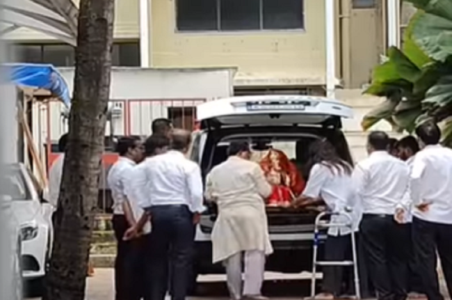 ऐसे में शिल्पा और राज (Shilpa welcomes Bappa) भी बप्पा को अपने घर ले आए हैं। भगवान गणेश की मूर्ति घर लाते हुए दोनों पैपराजी ने दोनों को स्पॉट किया, जिसका वीडियो सोशल मीडिया पर वायरल हो रहा है।