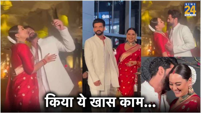 Sonakshi Sinha-Zaheer Iqbal Wedding: फाइनली इंतजार खत्म हो गया है और बॉलीवुड एक्ट्रेस सोनाक्षी सिन्हा और जहीर इकबाल शादी कर एक-दूजे के हो गए हैं। बीती रात कपल का शादी के बाद का पहला लुक भी सामने आया, जो अभी तक सोशल मीडिया पर माहौल बनाए हुए है। सोनाक्षी और जहीर की शादी के कई फोटोज और वीडियो सोशल मीडिया पर छाए हुए हैं। इस बीच एक वीडियो ऐसा भी सामने आया है, जिसमें सोनाक्षी ने अपनी सालों पुरानी इच्छा को पूरा कर लिया है। अब ये वीडियो भी इंटरनेट पर चर्चा का विषय बना हुआ है।