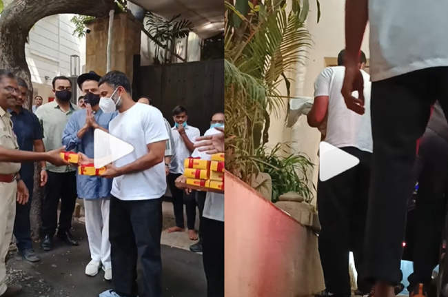 इंस्टेंट बॉलीवुड पेज पर शेयर किए गए एक अन्य वीडियो में आनंद आहूजा और अनिल कपूर दोनों ने मास्क लगा रखा है और अपने हाथ से सभी मीडियाकर्मी को मिठाई बांट रहे हैं।