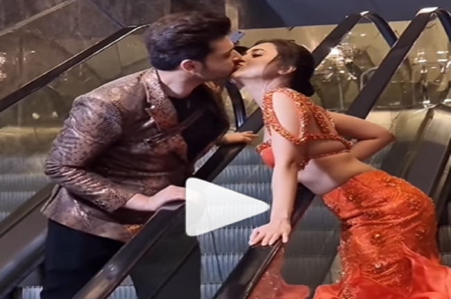 दरअसल, दोनों एक्टर्स को लिफ्ट की दोनों तरफ सीढ़ियों पर खड़े देखा जा सकता है, जिनमें से एक ऊपर की ओर जा रही है जबकि दूसरी नीचे आ रही है। जैसे ही करण और तेजस्वी एक दूसरे के सामने आते हैं, दोनों एक दूसरे की ओर झुकते हैं और लिप किस करते हैं।