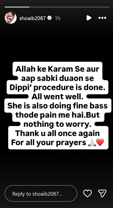 рдЕрдм рджреАрдкрд┐рдХрд╛ рдХреЗ рдкрддрд┐ рд╢реЛрдПрдм рдиреЗ рдПрдХреНрдЯреНрд░реЗрд╕ рдХрд╛ рд╣реЗрд▓реНрде рдЕрдкрдбреЗрдЯ рд╢реЗрдпрд░ рдХрд┐рдпрд╛ рд╣реИ. рджреАрдкрд┐рдХрд╛ рдХреЗ рдкрддрд┐ рдиреЗ рдЕрдкрдиреЗ рдЗрдВрд╕реНрдЯрд╛рдЧреНрд░рд╛рдо рдкрд░ рдПрдХ рд╕реНрдЯреЛрд░реА рдкреЛрд╕реНрдЯ рдХреА рд╣реИ. рдЗрд╕ рдкреЛрд╕реНрдЯ рдореЗрдВ рдЙрдиреНрд╣реЛрдВрдиреЗ рд▓рд┐рдЦрд╛ рд╣реИ рдХрд┐ рдЕрд▓реНрд▓рд╛рд╣ рдХреЗ рдХрд░рдо рд╕реЗ рдФрд░ рдЖрдк рд╕рдмрдХреА рджреБрдЖрдУрдВ рд╕реЗ рджрд┐рдкреНрдкреА рдХреА рдкреНрд░рдХреНрд░рд┐рдпрд╛ рдкреВрд░реА рд╣реЛ рдЧрдИ рд╣реИ. рд╕рдм рдареАрдХ рд╣реЛ рдЧрдпрд╛ рдФрд░ рд╡рд╣ рднреА рдареАрдХ рд╣реИ, рдмрд╕ рдереЛрдбрд╝реЗ рджрд░реНрдж рдореЗрдВ рд╣реИ, рд▓реЗрдХрд┐рди рдЪрд┐рдВрддрд╛ рдХреА рдХреЛрдИ рдмрд╛рдд рдирд╣реАрдВ рд╣реИ. рдЖрдкрдХреА рд╕рднреА рдХреА рдкреНрд░рд╛рд░реНрдердирд╛рдУрдВ рдХреЗ рд▓рд┐рдП рдПрдХ рдмрд╛рд░ рдлрд┐рд░ рдзрдиреНрдпрд╡рд╛рдж.