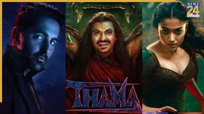 Thama Teaser Anyalsis Malaika Arora surprise: मैडॉक फिल्म्स का नाम आते ही दिमाग में सबसे पहले स्त्री, भेड़िया और मुंजिया की दुनिया सामने आती है. इस यूनिवर्स की फिल्में दर्शकों के दिल में खास जगह बना चुकी हैं। भेड़िया, मुंजिया, स्त्री और स्त्री 2 की जबरदस्त कामयाबी के बाद अब दिनेश विजन एक नई फिल्म लेकर आ रहे हैं, जिसका नाम है ‘थामा’। इस फिल्म में आयुष्मान खुराना और रश्मिका मंदाना लीड रोल में नज़र आ रहे हैं। मंगलवार को फिल्म का टीजर ड्राप कर दिया गया है, जिसे देखकर लग रहा है कि ये फिल्म दर्शकों को रोमांस, हॉरर और एक्शन का अनोखा कॉम्बिनेशन देने वाली है।