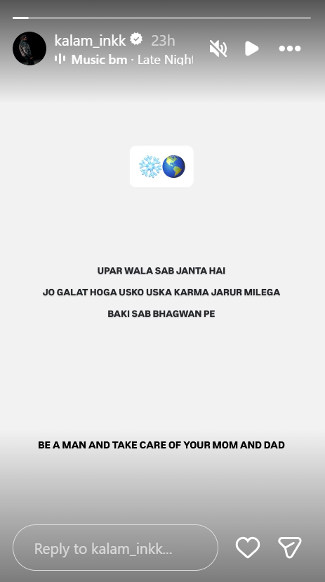 рдЕрдиреБрд░рд╛рдЧ рдХреЗ рднрд╛рдИ рдХрд▓рдо рдиреЗ рдЕрдкрдиреЗ рдЗрдВрд╕реНрдЯрд╛рдЧреНрд░рд╛рдо рдкрд░ рдПрдХ рд╕реНрдЯреЛрд░реА рдкреЛрд╕реНрдЯ рдХреА рд╣реИ. рдЗрд╕ рдкреЛрд╕реНрдЯ рдореЗрдВ рдХрд▓рдо рдиреЗ рд▓рд┐рдЦрд╛ рд╣реИ рдХрд┐ рдКрдкрд░ рд╡рд╛рд▓рд╛ рд╕рдм рдЬрд╛рдирддрд╛ рд╣реИ, рдЬреЛ рдЧрд▓рдд рд╣реЛрдЧрд╛, рдЙрд╕рдХреЛ рдЙрд╕рдХрд╛ рдХрд░реНрдорд╛ рдЬрд░реВрд░ рдорд┐рд▓реЗрдЧрд╛, рдмрд╛рдХреА рд╕рдм рднрдЧрд╡рд╛рди рдкрд░, рдЖрджрдореА рдмрдиреЛ, рдЕрдкрдиреЗ рдорд╛рддрд╛-рдкрд┐рддрд╛ рдХрд╛ рдзреНрдпрд╛рди рд░рдЦреЛ. рдЕрдм рдХрд▓рдо рдХрд╛ рдпреЗ рдкреЛрд╕реНрдЯ рдЪрд░реНрдЪрд╛ рдореЗрдВ рд╣реИ, рдХреНрдпреЛрдВрдХрд┐ рдЕрдиреБрд░рд╛рдЧ рдиреЗ рдЕрдкрдиреЗ рднрд╛рдИ рдкрд░ рднреА рдЖрд░реЛрдк рд▓рдЧрд╛рдпрд╛ рдерд╛.