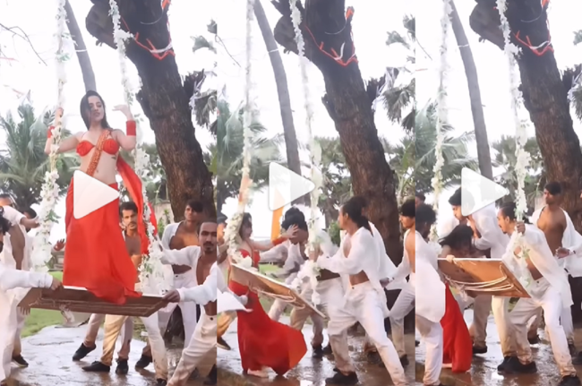 नारंगी रंग की साड़ी पहने उर्फी को बारिश में झूले पर खड़ी हो नाचते हुए देखा जा सकता है। बेहद सेक्सी और हॉट लग रही उर्फी गाने की शूटिंग करने में व्यस्त नजर आ रही हैं, तभी उनका हाथ झूले की रस्सी से छूट जाता है और वो झूले से फिसल (Urfi Javed fall Down video) पड़ती हैं। हालांकि, वो नीचे गिरने से चंद सेकेंड्स से बचती हैं और बैकग्राउंड डांसर्स उन्हें समय रहते बचा लेते हैं।