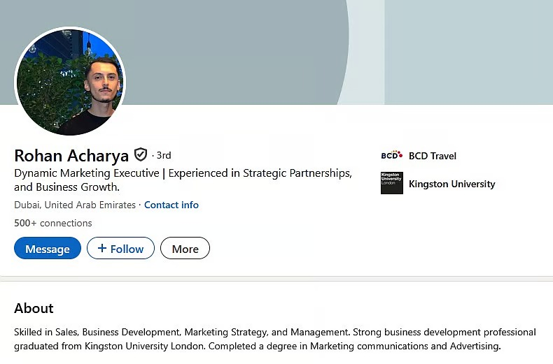 इसके अलावा अगर इंडिया टुडे की रिपोर्ट की मानें तो रोहन दुबई में रहते हैं. कथित तौर पर रोहन ब्लूग्राउंड में पार्टनर और सर्विस एग्जीक्यूटिव हैं. फ्रीन प्रेस जर्नल की रिसर्च के अनुसार, ब्लूग्राउंड में काम करने वाले रोहन आचार्य अब बीसीडी ट्रैवल में प्रोजेक्ट्स और पार्टनरशिप एग्जीक्यूटिव के पद को देख रहे हैं.